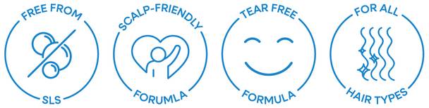 • Free from harsh detergents (SLS) that can sting if washed into eyes. Tear-free formula.