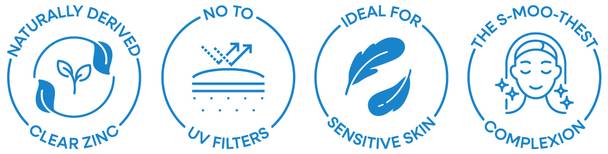 How to apply for the s-MOOth-est finish: Zinc-based products can be a little thicker than chemical ones, but we promise it’s worth the extra step. Just warm a small amount between your fingers for 10-30 seconds before applying. This softens the cream (thanks to your natural body heat), making it easier to spread and blend evenly. Let it sit on your skin for a few moments, then rub in gently for a natural, dewy finish. Avoid contact with eyes